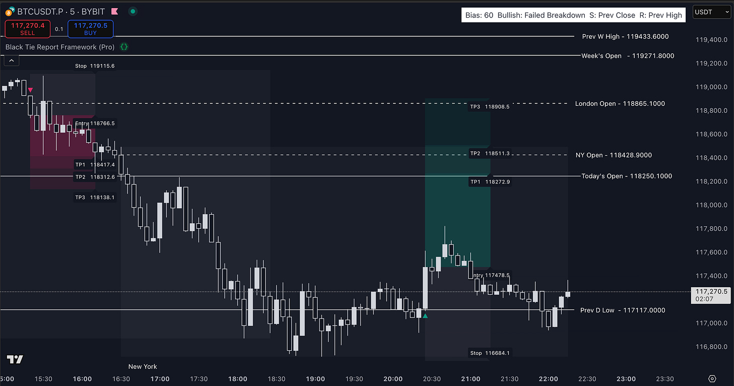 5m → 1H keeps scalps aligned with the real intraday structure.