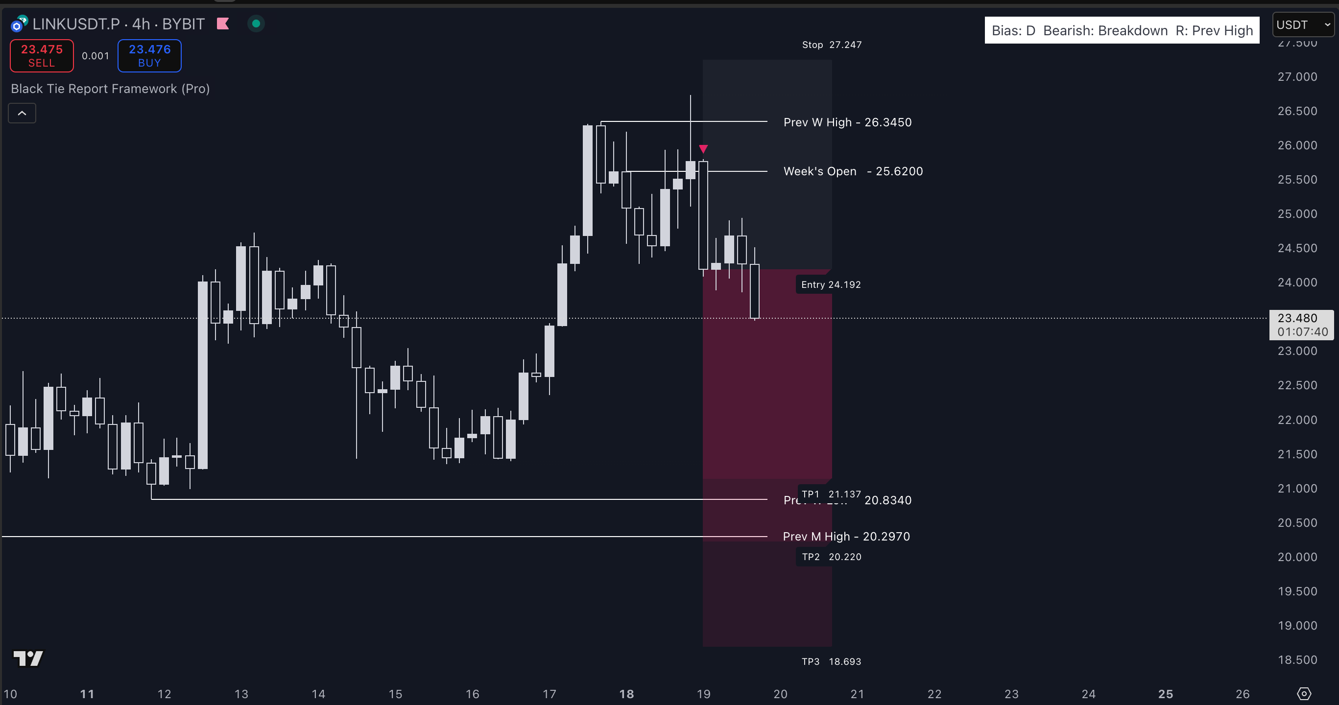 At the time of writing (Tuesday), BTC, XRP and LINK are breaking down across the board. These aren’t “could be” trades. They’re live setups confirmed by structure, bias, and level rejection — and we’re in.