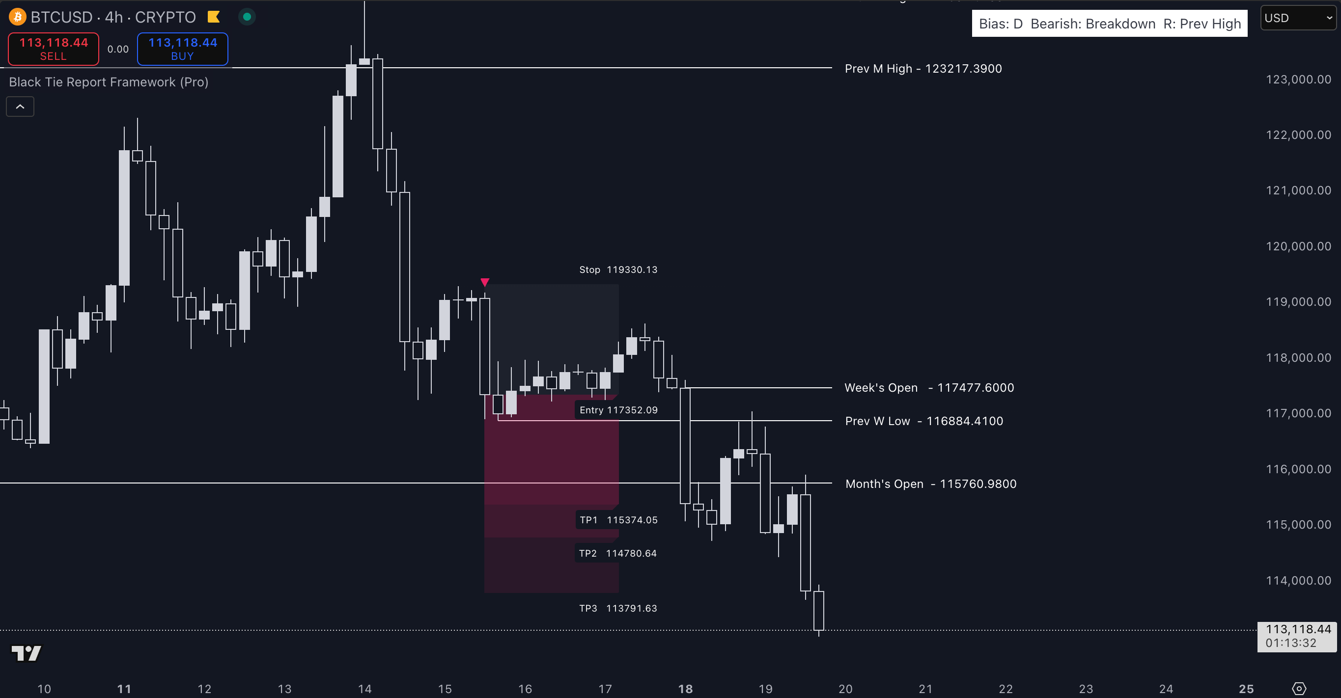 This is not a recap. It’s a breakdown of what we saw, what the Framework confirmed, and why we shorted. Each setup follows the same logic, visible whether you’re on the 5m or the 4H — bias, context, confirmation.